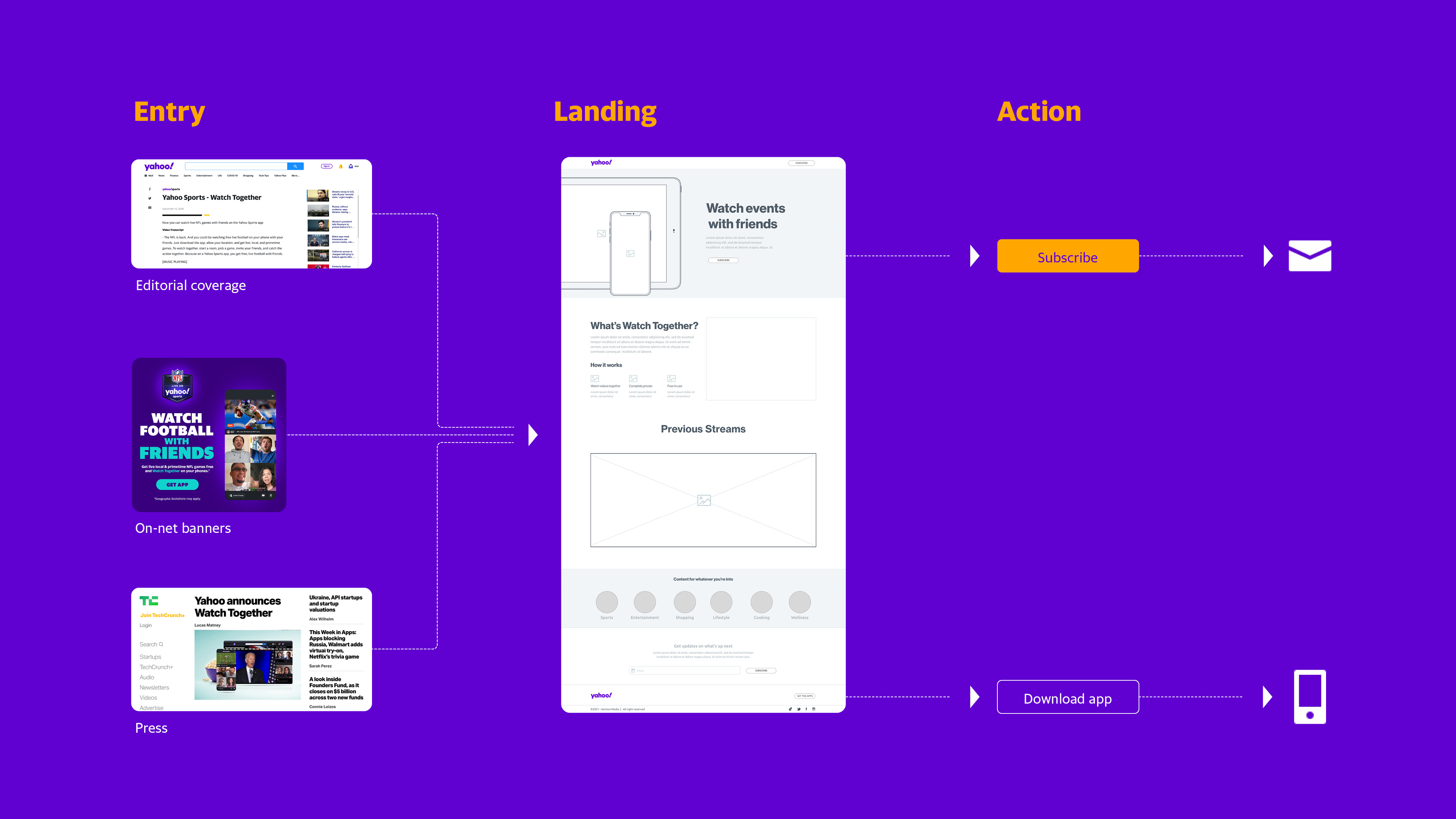 In 2020 Yahoo launched Watch Together, a new feature offering a next generation co-viewing experience. The feature allowed family and friends to connect, safely.